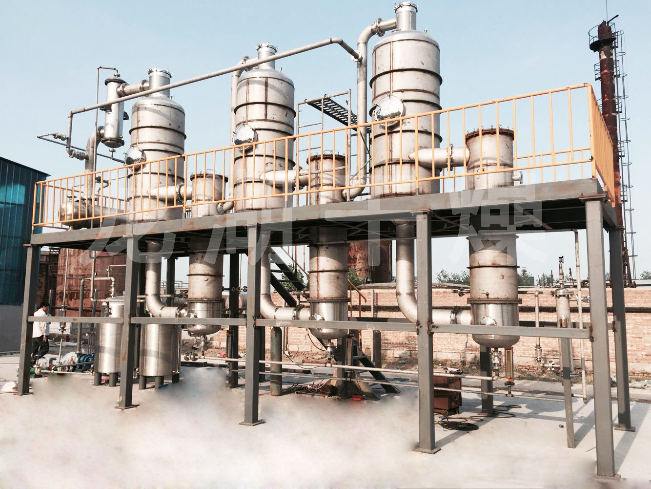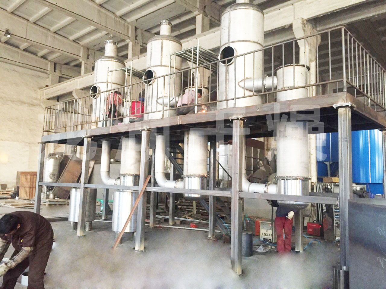 張家港某公司金屬清洗廢水使用現場,蒸發量每小時200kg,雙效蒸發器,配備電加熱蒸汽發生器